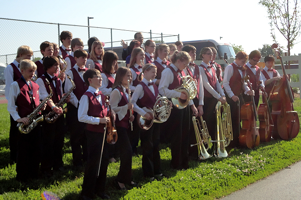 They look pretty sharp considering we never practiced standing at attention. There’s the trumpet with summer marching band experience again. Once you’ve got it, you never lose it!